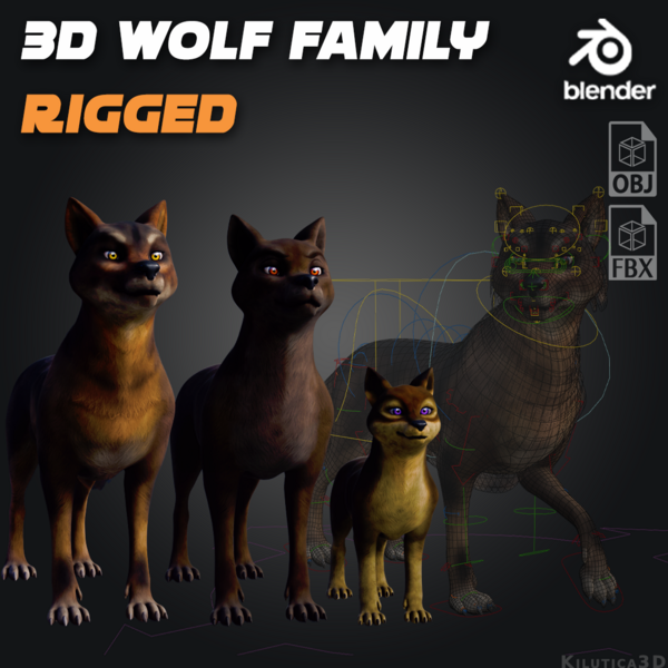 Wolf Prime: Rigged Wolf Family 3D Model Pack
