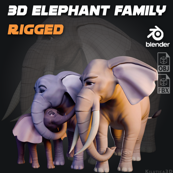 Stylized Elephant Family: Rigged Character Pack (Male, Female, Cub)