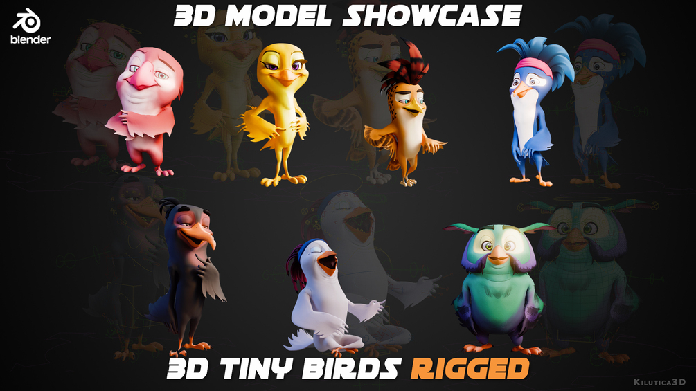 - 7 Fully Rigged Birds: Includes the full collection of rigged characters: Canary, Crow, Cockatoo, Parrot, Owl, Bluebird, and Orange Bird.